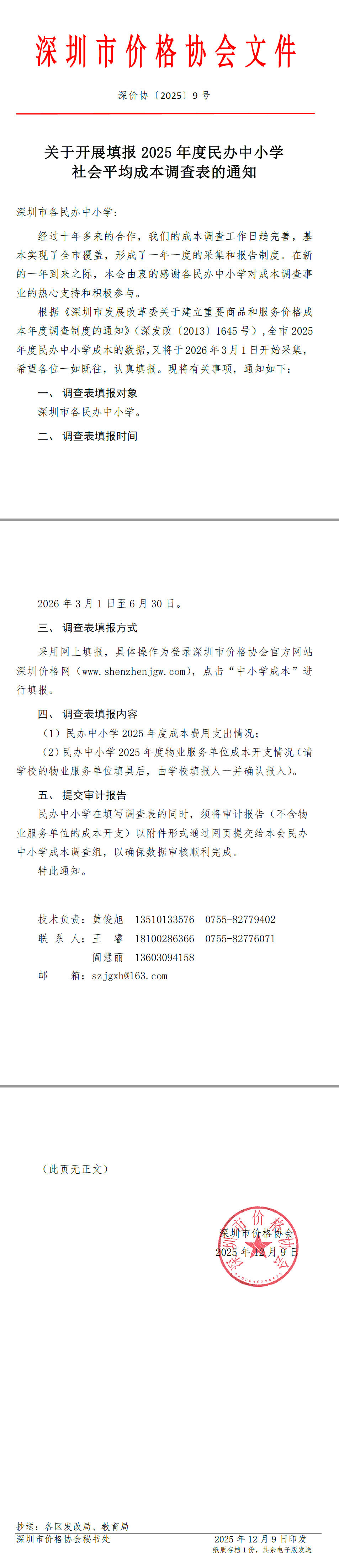 关于开展填报2025年度民办中小学社会平均成本调查表的通知